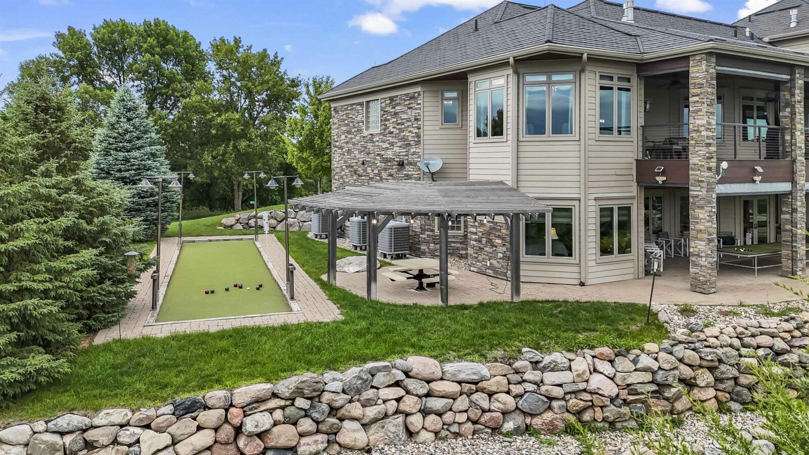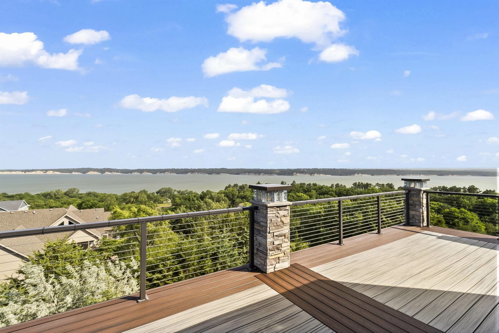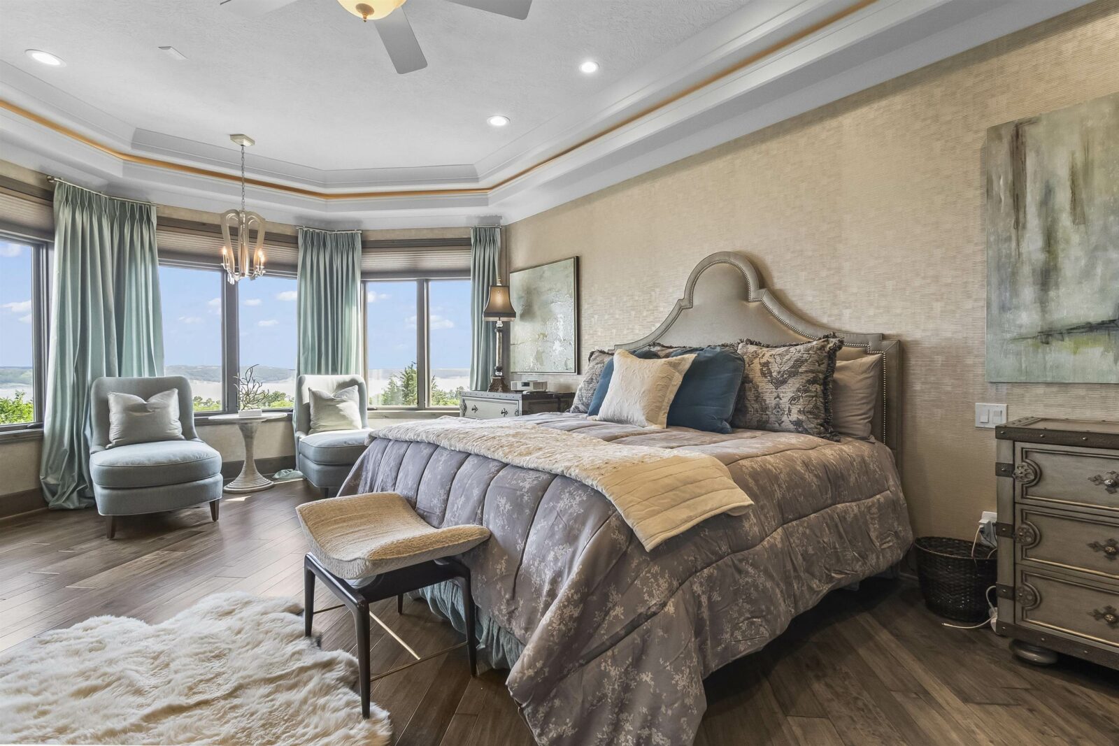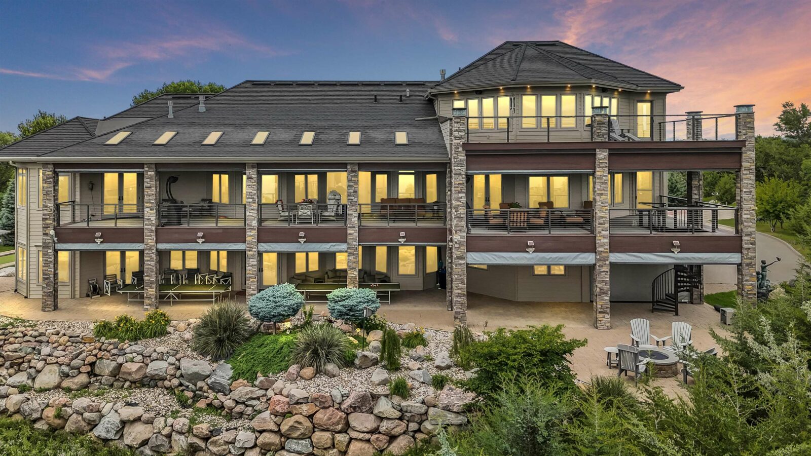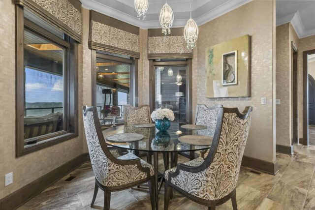 A generational lakefront estate conceived without compromise and positioned for legacy ownership. 5.5 private acres. Over 8,500 finished square feet. Uninterrupted water views from nearly every room. This is not a lake house — it is a fully realized private compound built for permanence and designed to be handed down. Brick and EFIS construction with a lifetime metal roof. Over 2,800 square feet of heated garage and storage structures with RV and boat clearance. A heated walkout workshop with kitchenette infrastructure that converts cleanly to guest quarters, a studio, or staff accommodations depending on what ownership requires. Inside, hardwood floors, radiant in-floor heating, and walls of glass define the main level — the lake present in nearly every room without being forced. Nine-foot arched entry doors. A bowed living room wall framing the water. An office lined with custom built-ins and enclosed by French doors. Four gas fireplaces including a double-sided linear unit. An elevator serving all three floors. The layout moves between daily living and large-scale entertaining without reconfiguring anything. The kitchen is a serious working environment — Thermador appliances, dual islands in illuminated quartzite and marble, pot filler, custom hood, paneled refrigeration, heated tile floors, and a walk-in pantry. A fully equipped secondary kitchen on the lower level handles catering-scale hosting without touching the primary space. A dedicated wine room with full-size wine refrigeration and built-in glass cabinetry sits just off the kitchen. The primary suite occupies its own wing of the main level. Radiant heated floors, spa bath with oversized walk-in shower, dual walk-in closets with integrated laundry, coffee bar, bidet, and direct access to the lake-facing deck. Four additional bedroom suites across the upper and lower levels — each with lake or wooded views, each with private bath access — are finished to the same standard. Outdoors, covered decks and patios are built for four-season use with hurricane screens and fire features. The shoreline landing includes a pergola, fire pit, and water feature — a natural endpoint to the property. Offered fully furnished. South Dakota carries no state income tax, no estate tax, and no inheritance tax — advantages that matter to buyers whose assets are built to last.
