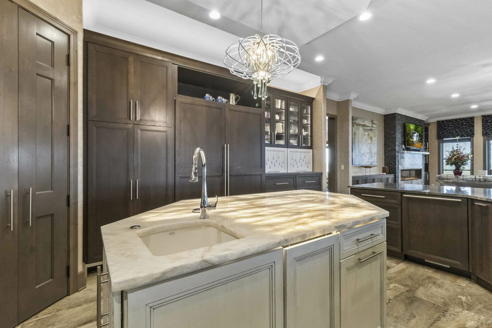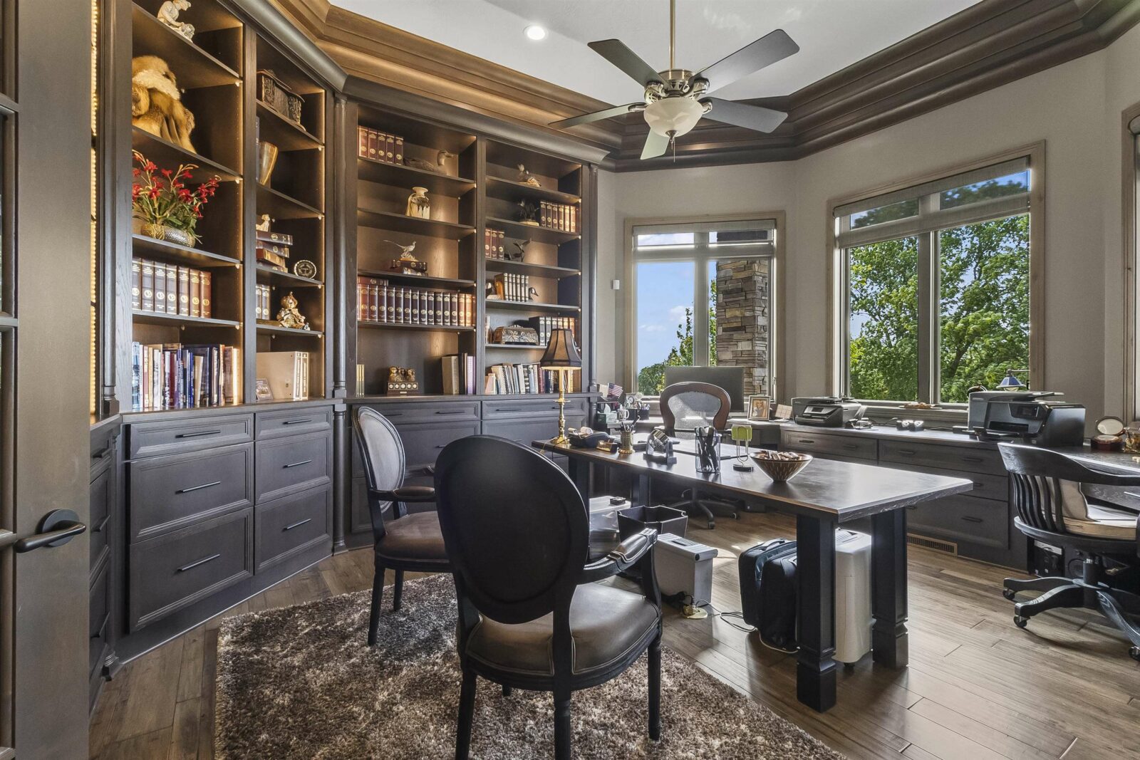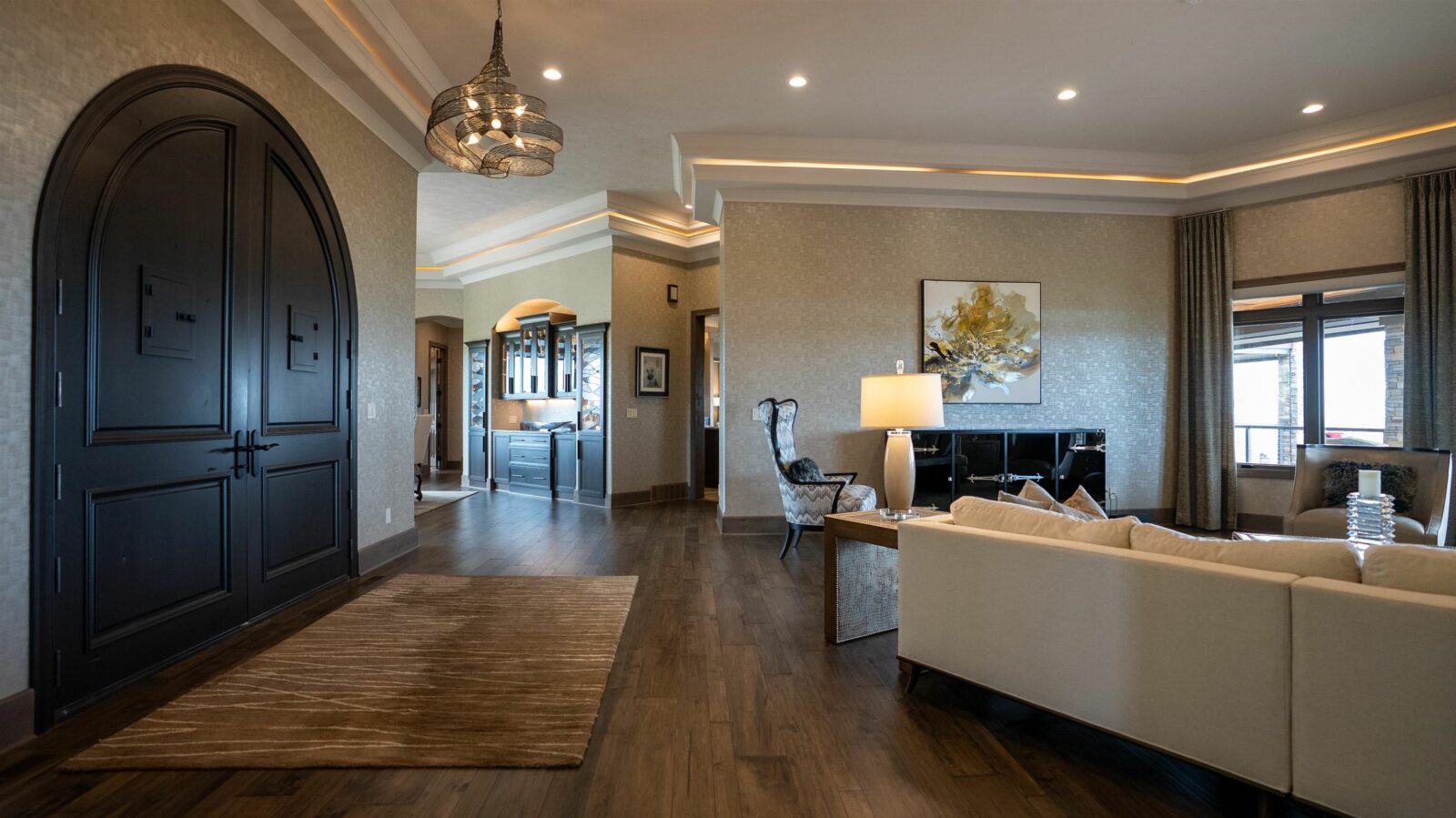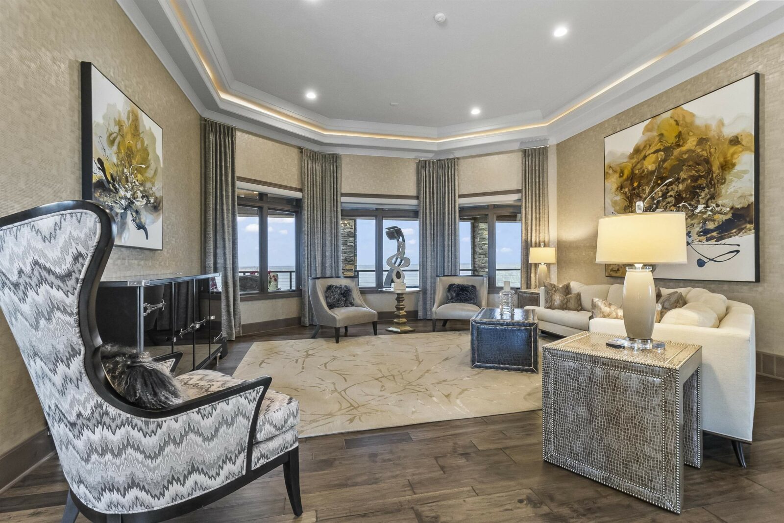 A generational lakefront estate conceived without compromise and positioned for legacy ownership. 5.5 private acres. Over 8,500 finished square feet. Uninterrupted water views from nearly every room. This is not a lake house — it is a fully realized private compound built for permanence and designed to be handed down. Brick and EFIS construction with a lifetime metal roof. Over 2,800 square feet of heated garage and storage structures with RV and boat clearance. A heated walkout workshop with kitchenette infrastructure that converts cleanly to guest quarters, a studio, or staff accommodations depending on what ownership requires. Inside, hardwood floors, radiant in-floor heating, and walls of glass define the main level — the lake present in nearly every room without being forced. Nine-foot arched entry doors. A bowed living room wall framing the water. An office lined with custom built-ins and enclosed by French doors. Four gas fireplaces including a double-sided linear unit. An elevator serving all three floors. The layout moves between daily living and large-scale entertaining without reconfiguring anything. The kitchen is a serious working environment — Thermador appliances, dual islands in illuminated quartzite and marble, pot filler, custom hood, paneled refrigeration, heated tile floors, and a walk-in pantry. A fully equipped secondary kitchen on the lower level handles catering-scale hosting without touching the primary space. A dedicated wine room with full-size wine refrigeration and built-in glass cabinetry sits just off the kitchen. The primary suite occupies its own wing of the main level. Radiant heated floors, spa bath with oversized walk-in shower, dual walk-in closets with integrated laundry, coffee bar, bidet, and direct access to the lake-facing deck. Four additional bedroom suites across the upper and lower levels — each with lake or wooded views, each with private bath access — are finished to the same standard. Outdoors, covered decks and patios are built for four-season use with hurricane screens and fire features. The shoreline landing includes a pergola, fire pit, and water feature — a natural endpoint to the property. Offered fully furnished. South Dakota carries no state income tax, no estate tax, and no inheritance tax — advantages that matter to buyers whose assets are built to last.