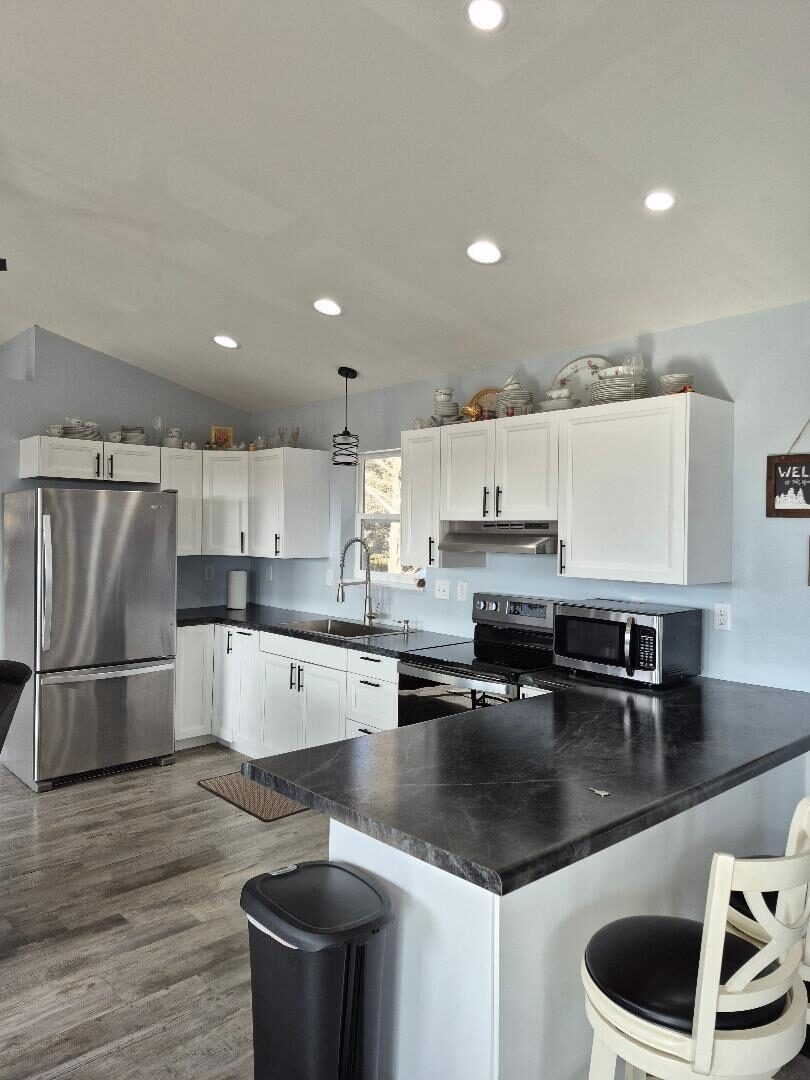 Garage Heater, remotes, bar stools, fridge, stove. Washer/dryer negotiable.