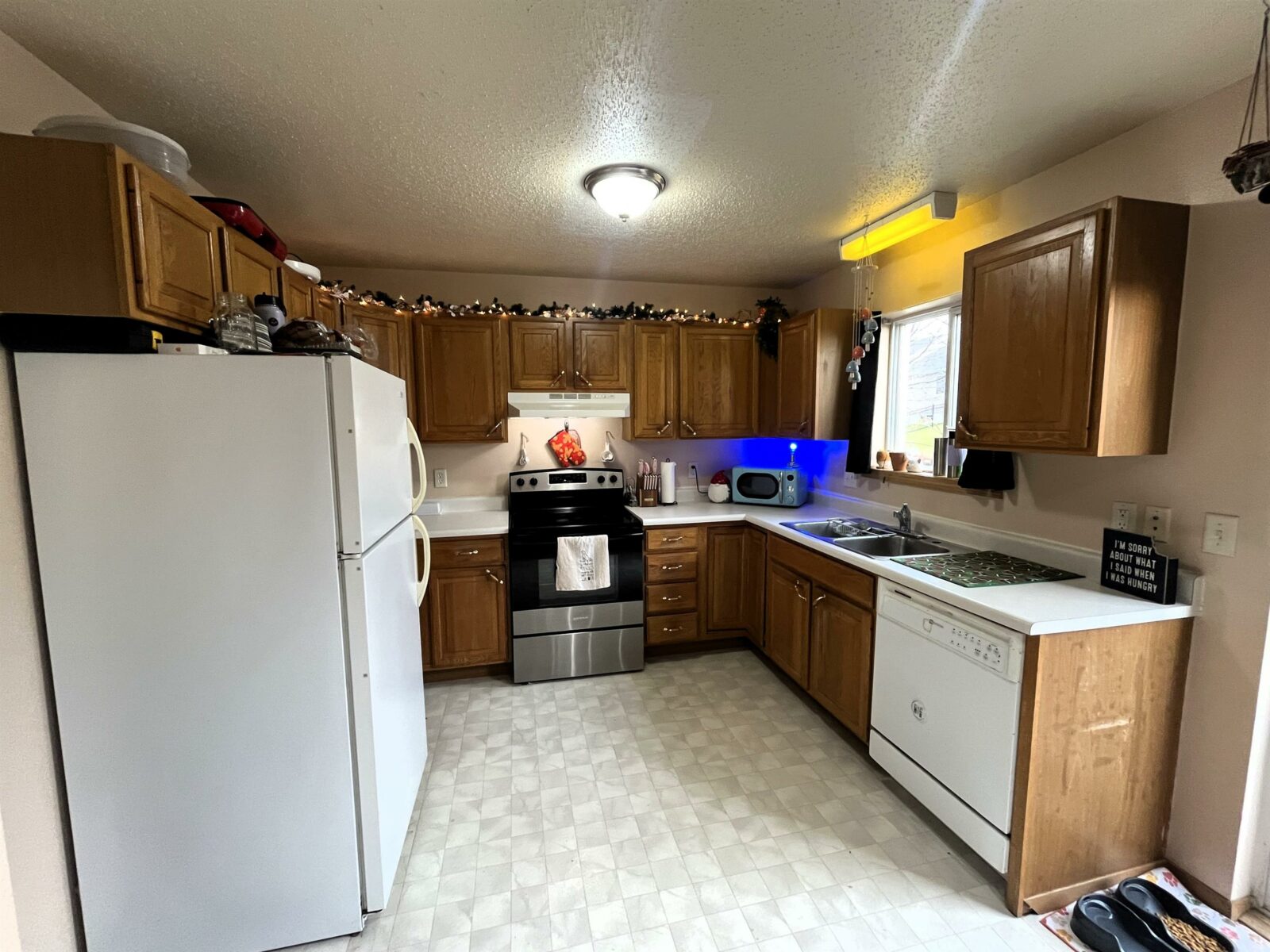Fridge, stove, dishwasher, washer/dryer, and all attached fixtures.