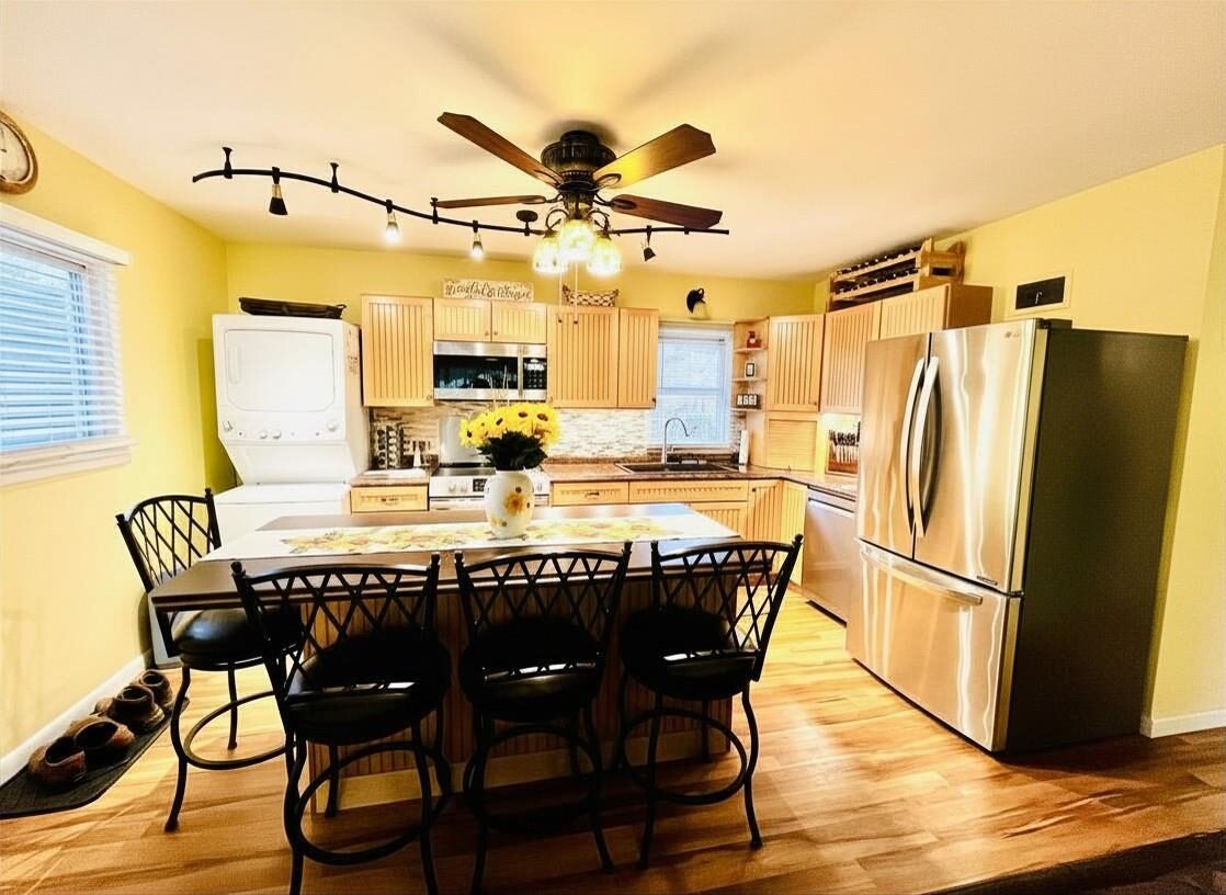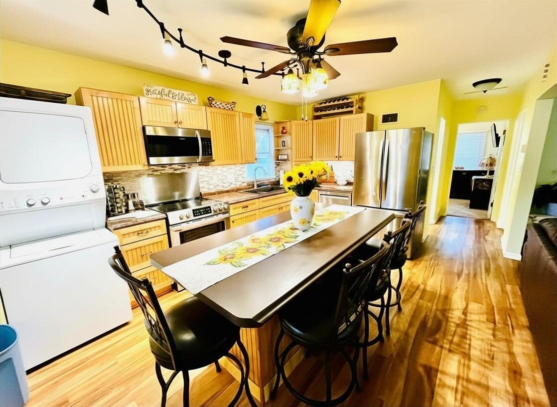 --- Some houses just feel taken care of the second you pull up. This is one of those. The current owners have lived here, loved it, and quietly poured years into making it better. The 1953 ranch bones are still here. Almost everything else has been updated. The kitchen was opened up and given a real center island. Both three-quarter baths have been redone, the windows are newer, and the basement is fully finished, adding another 691 square feet of usable space. Here's where it gets interesting. With R4 multi-family zoning, a full kitchen already in the basement, and its own washer and dryer down there, you've got a turnkey setup for a basement apartment, whether that's rental income, extended family, or a long-term guest space. There's also a second stackable washer/dryer on the main floor, which sounds like overkill until you live with it for a week, or until you're running two households under one roof. Out back: a fenced yard with an in-ground sprinkler system, so summer evenings are for sitting outside, not chasing hoses. Two detached garages off the alley plus two extra parking pads, all on fresh concrete, mean parking is never going to be the problem. Plenty of room for vehicles, a workshop, storage, or splitting space off for a tenant. The full list of updates is too long to fit here. The short version is that new owners get to skip the projects and just move in. Two stoves, two fridges, dishwasher, microwave, both laundry setups, and all the attached fixtures stay. Walkable to downtown, parks, and schools. R4 zoning and low taxes round it out.