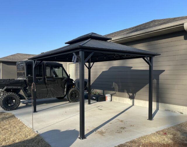 Refrigerator, stove, microwave, dishwasher, washer, dryer, window coverings and pergola.